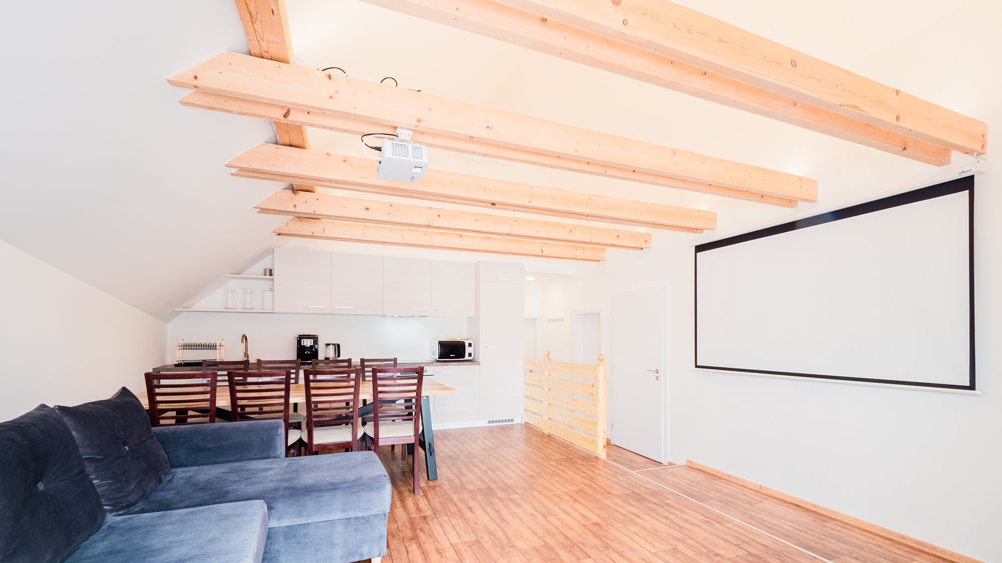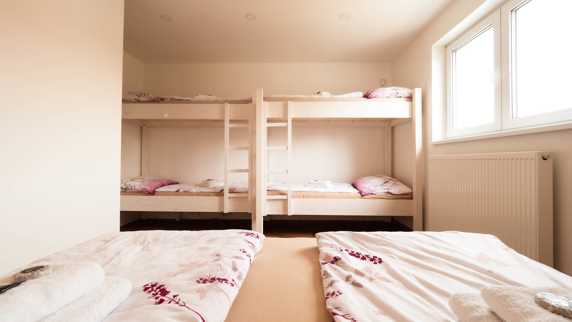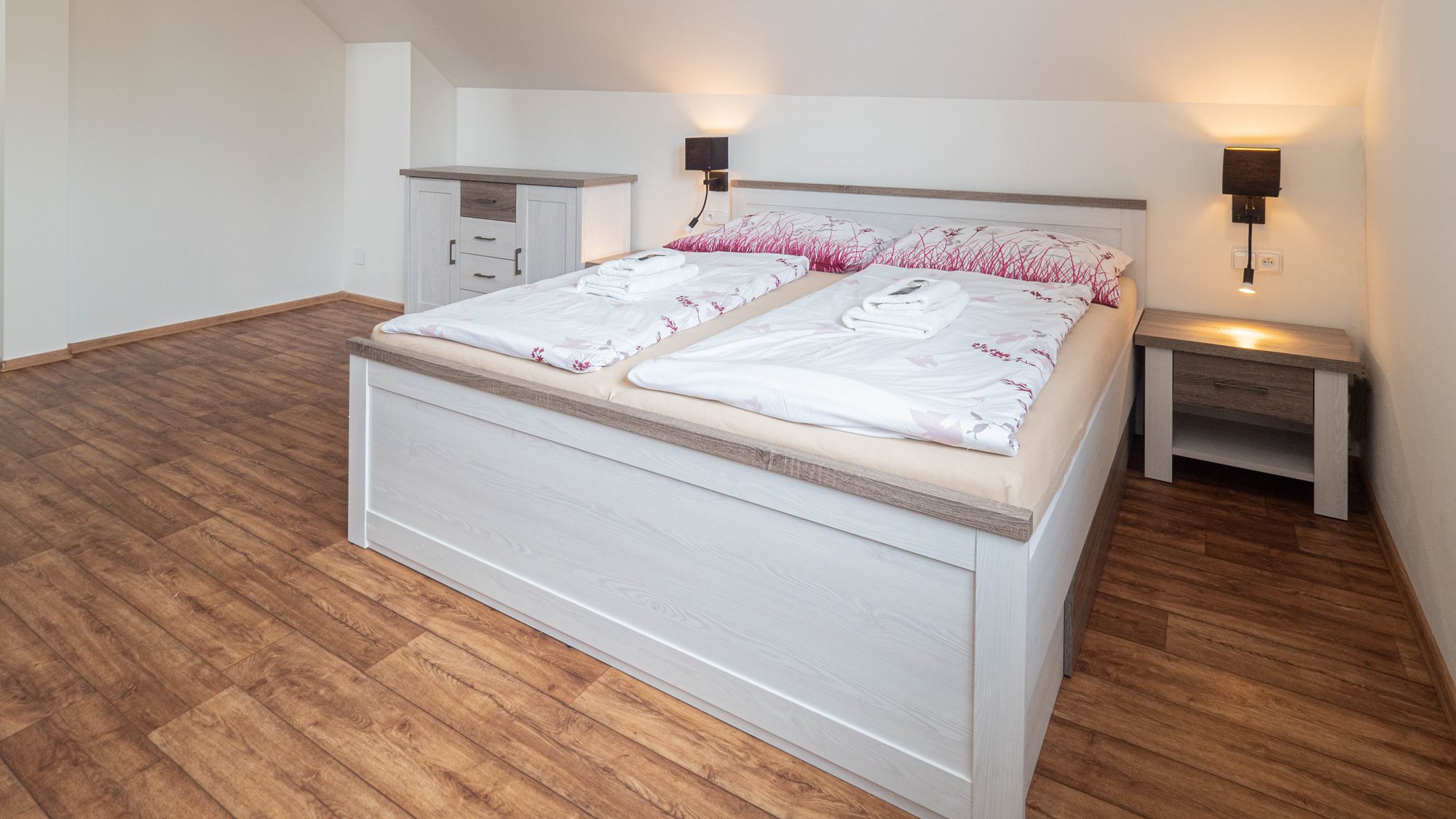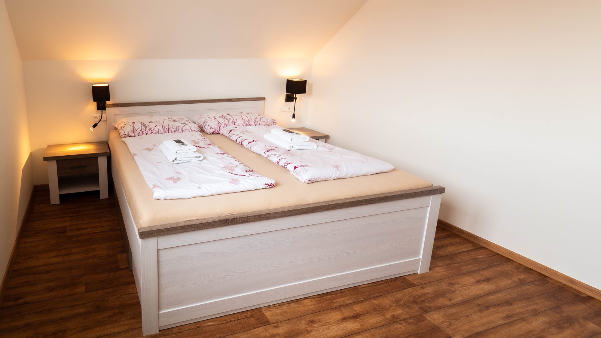 2 klimatizované ložnice, velká koupelna s vanou i sprchovým koutem, 8 lůžek, velký obývací pokoj.